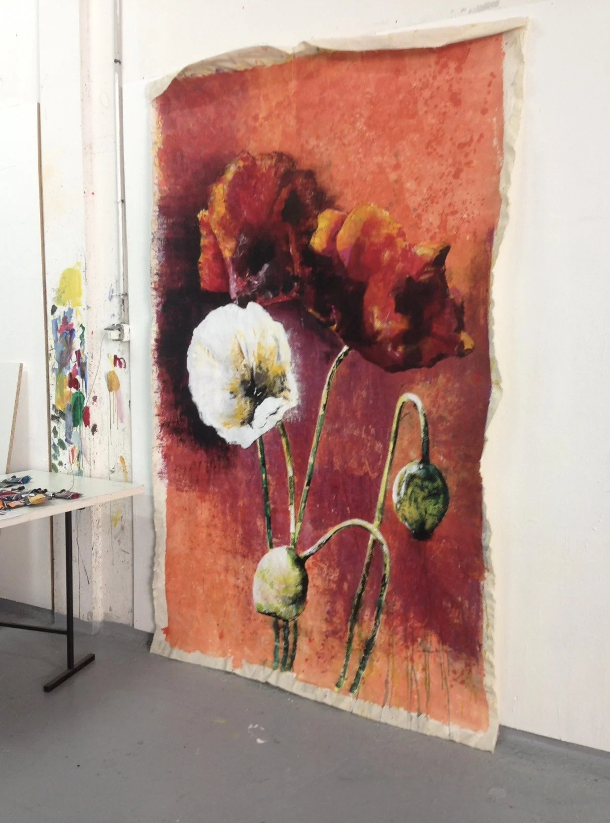 Delle caraffe vuote, dei fiori sparpagliati, dei paesaggi di primavera sono l’occasione di far trapelare la visione onirica che gli appartiene, dove si confondono linee astratte e potenti evocazioni realistiche.